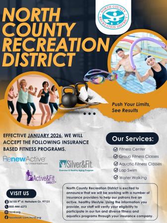 Beginning January 2026, NCRD will accept several insurance-based fitness benefit programs for those who qualify. These benefits provide participants with a full-access Combo Pass, including Aquatic Center access and Fitness Center access.