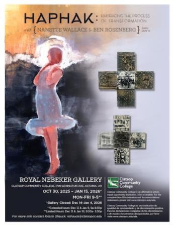 Ending this Thursday January 15! HAPHAK : Nanette Wallace, and Ben Rosenberg at ROYAL NEBEKER GALLERY, Art Building Clatsop Community College 1799 Lexington Ave., Astoria. HAPHAK: Embracing the Process of Transformation celebrates the power of art to grow, connect, and inspire. This compelling show draws viewers into the intersections of memory, identity, and creativity, offering a personal yet relatable experience. @royal_nebeker_gallery @nanettewallace @clatsopcc