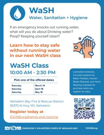 The EVCNB WaSH (water/sanitation/hygiene) 2.5 hr. class offers valuable and applicable information, which will support your planning for natural disasters and weather events.