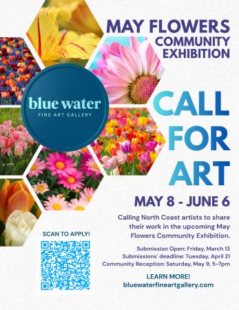Meet the artists, enjoy light refreshments, and experience a vibrant collection of original works inspired by the renewal and imagination of the season. The exhibition features North Coast artists working across a range of media, each offering their own interpretation of “May Flowers.”
