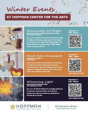 Scan the QR codes on the flyer or visit hoffmanarts.org to register.â