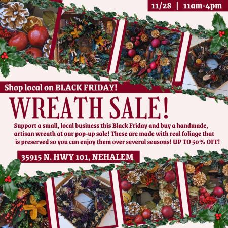 Christmas trees and hand made wreaths by Jose, will be available outside.