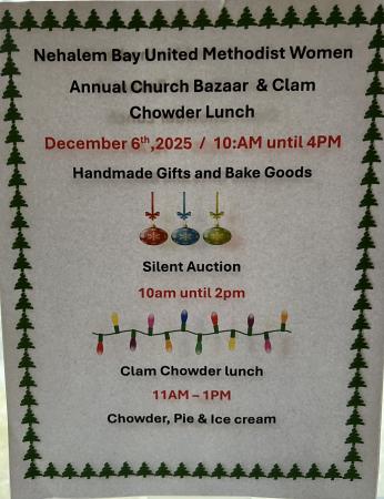 Itâs finally time for you to enjoy the secret recipe Clam Chowder thatâs made in the kitchen at Nehalem Bay United Methodist Church by Chef Doug Dickey.