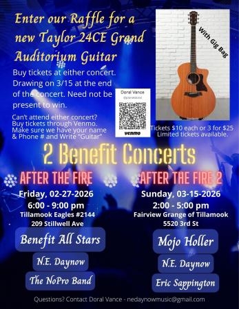 Taylor Guitar Raffle-After the Fire-2 Benefit Concerts to Support Scott Casey & Cosmo Jones