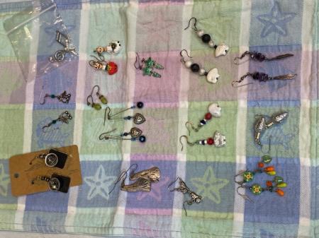 14 Pairs of pierced earrings, various gems, stones, ‘Day of the Dead, mostly all fun and/or beautiful.