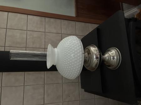 Kerosene lamp with white hob nail shade. $50.