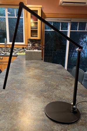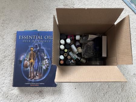 Brown-greenish-bronze with natural leather handles, rectangle base. Includes original storage bag and booklet (in several languages).