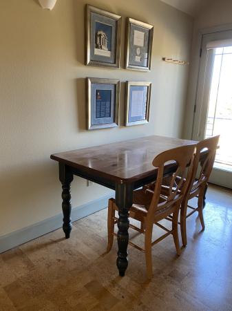 Only slight wear on bag, no stains or tears inside (brown sturdy cloth, one large, one small pocket). Handles are soft and comfortable.