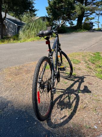 This Infinity Boss Three ST hybrid bicycle was purchased new from Costco in 2022. It has many nice features, including a Shimano 24 speed drive train and disk brakes. It has been lightly used and is in very good condition. It is ready to ride.