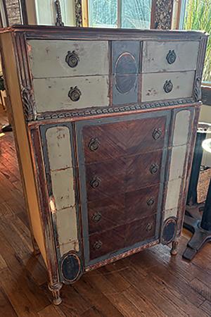 It about 2 feet wide, 20 inches tall, 7.5 inches deep. I paid over a hundred for it in a camas,wa antique shop. I just can’t find a functional space for it in my current downsized studio.