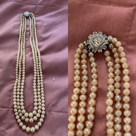 I have a vintage set of faux pearls. 3 strand, graduated with unique/decorative silver and cut glass clasp. They are 70-80 years old. I’ve had them for a good 40 years I’m very good shape. I saw similar on line for sale at and above the one hundred dolla mark.