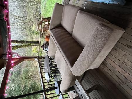 Blue couch and loveseat with pillows – good condition, smoke-free home with some souvenir white dog hair included