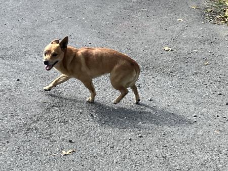I got lucky and he sort of trapped himself on our deck yesterday afternoon. We had him for the evening and then he wriggled away from his overnight person. So now he’s roaming Wheeler again, potentially still with our faded red slip lead dragging.