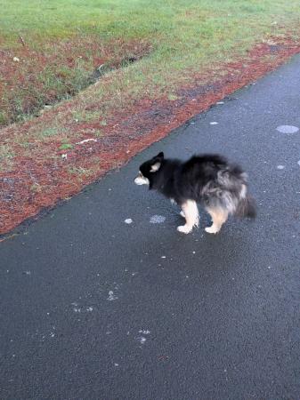 He seems to also be more willing to approach other dogs. So if you have a socially-capable dog that might help you entice him your way or into a garage or something, that might help. He was not food motivated while in flight mode but ate once he felt safe and contained and was re-acclimating to being a domestic dog again. Food will only be useful if you’re able to leave it out or scatter to help usher him into an enclosed area. I can’t do that well here at our place bc of crows and raccoons.
