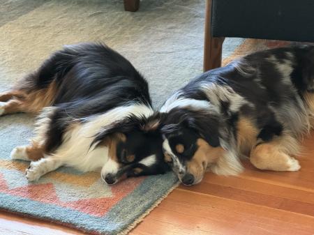 We offer: home all day, dogs welcome on the furniture, car rides whenever not too hot, rural property (there is a fenced area, not right out the door), multiple daily walks, treats.