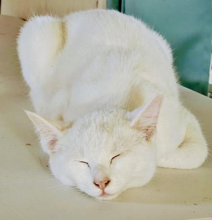 Mercutio is a stunning white cat with two light black spots on his head and cute pink ears. Romeo is a carbon copy of his brother, Mercutio. He is all white but has three faded black spots on his forehead and pink ears which makes him interesting and unique.