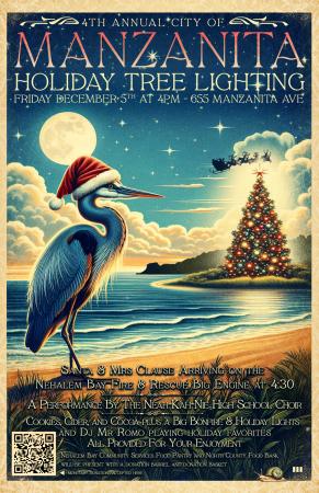 This Friday, December 5, join us for a visit with Santa at the annual Christmas Tree Lighting at the Manzanita City Hall. The Neahkahnie High School Choir will be there to sing.