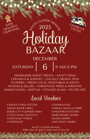 Holiday Bazaar this Saturday 12/6 11-3 White Clover Grange in Nehalem