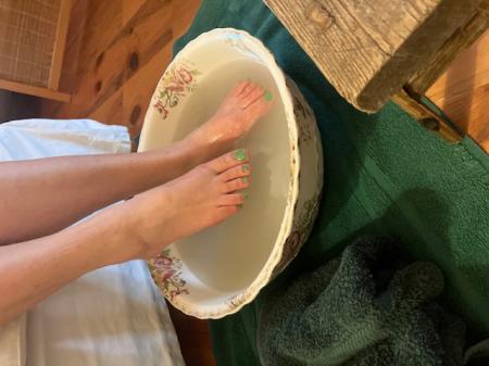 Services include sea or epsom salt foot bath, ginger optional for warming winter feet and joints.