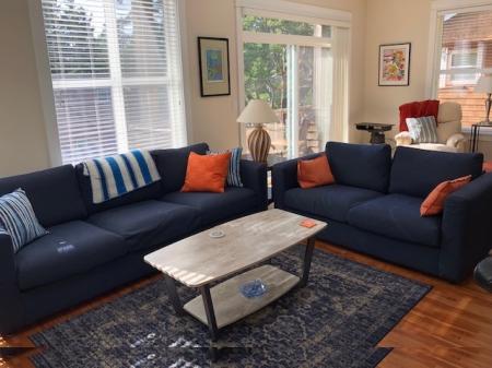 3 year old dark blue Ikea couch and love seat for sale in Manzanita. Excellent condition except for some fading on the back of love seat. $400 for the set. Available to view Apr 21-24. Text 503-970-5121 to come by to view them.