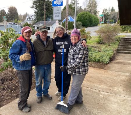 NBGC “adopted” beautification and re-landscaping the front of the Post Office in Nehalem as a service club project. Over the past several months, NBGC has been working tirelessly starting with removal of old overgrown shrubs and some very “healthy” blackberries and weeds. Thanks to a generous donation by Jiffy Construction, the heavy lifting was done by mechanical removal and garden club members did the finer work with shovels and sweat equity. Once the beds were cleaned up, the real gardening fun was ready to begin.